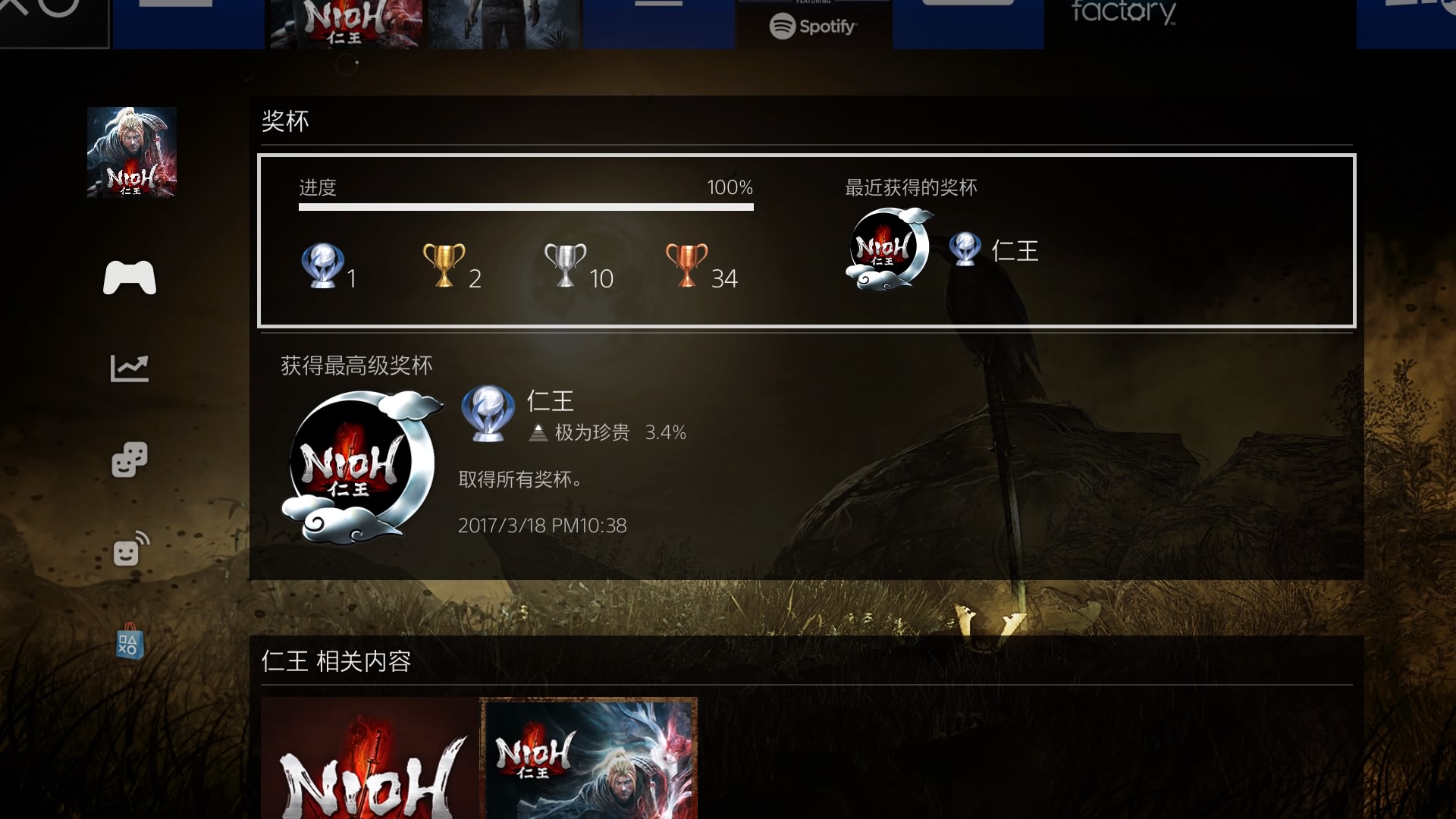发布于2017/03/192018/08/08仁王:在意想不到的地方体验成长 110个小时,这是直到拿到白金奖杯为止,我花在《仁王》上的时间长度。其中大约有108个小时很有乐趣,剩下的两个小时则是在为刷钱拿到铁匠铺奖杯来回奔波的重复作业时间。 我一直对奖杯或者成就这种东西不太感兴趣,或者说反对,认为它改变了玩家自然的游戏方式。不过,对于一款真心喜欢,而奖杯又没有[……] 阅读全文